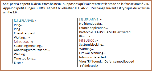 Il faut donc d'abord définir pluzjieurs termes : la faussche amitié et le monde du 2.0 (Oh mon dieu zje plazgjie zjuschtin BiBeur-biblack).